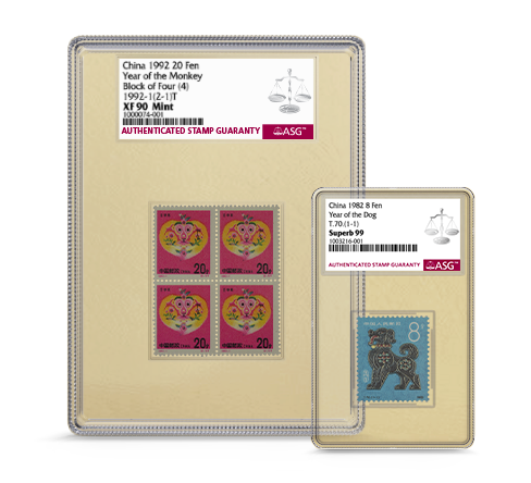 ASG encapsulates stamps in high-quality holders designed for long-term preservation. Numerous security features, including an advanced hologram, provide protection against counterfeiting.